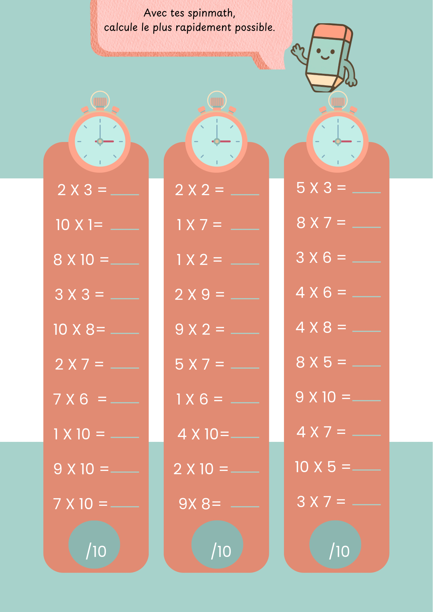 - 10 fiches de calculs prêtes à l'emploi